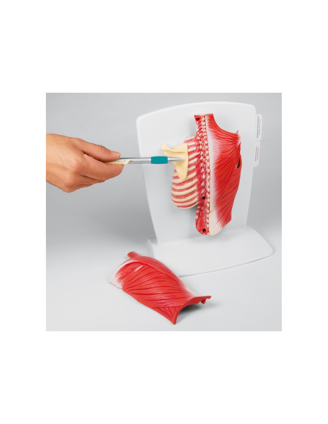 Mous et flexibles, les strates musculaires superficielles et intermédiaires sont amovibles et exposent les muscles profonds en rendant la compréhension des réactions anatomiques une expérience facile et interactive.