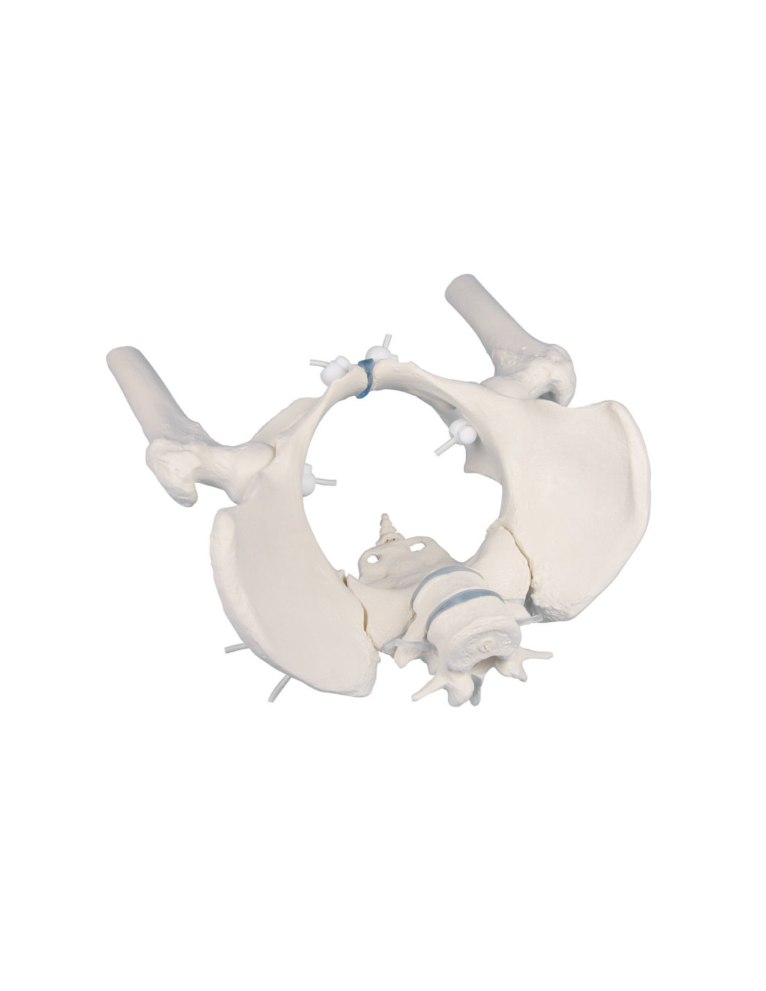 Modèle anatomique didactique de squelette du bassin féminin à montage élastique avec os sacré, deux vertèbres lombaires et troncs des fémurs 4058