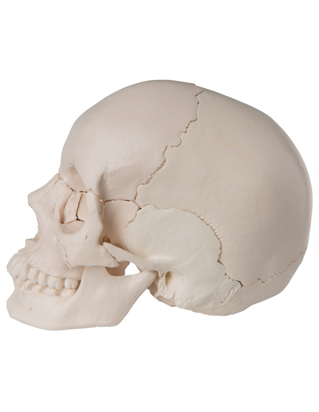 Le crâne humain est constituée de plusieurs os qui n'adhèrent les uns aux autres qu'au cours du développement. Le nouveau crâne démontable 3B Scientific est un moulage naturel qui souligne la structure complexe du crâne ave clarté, car il peut se décomposer en 22 os.