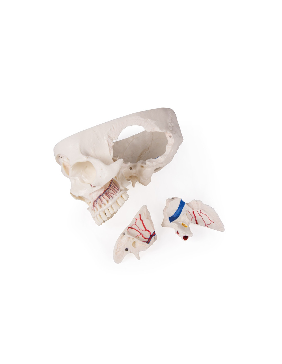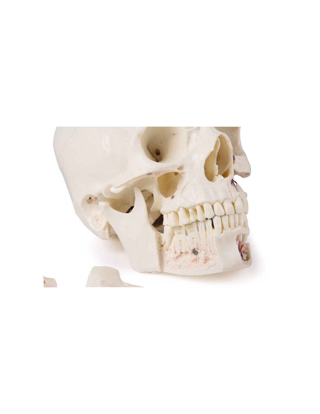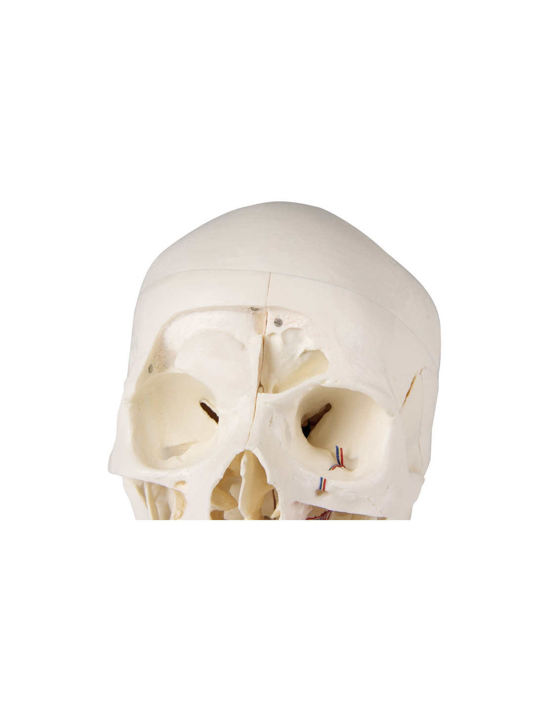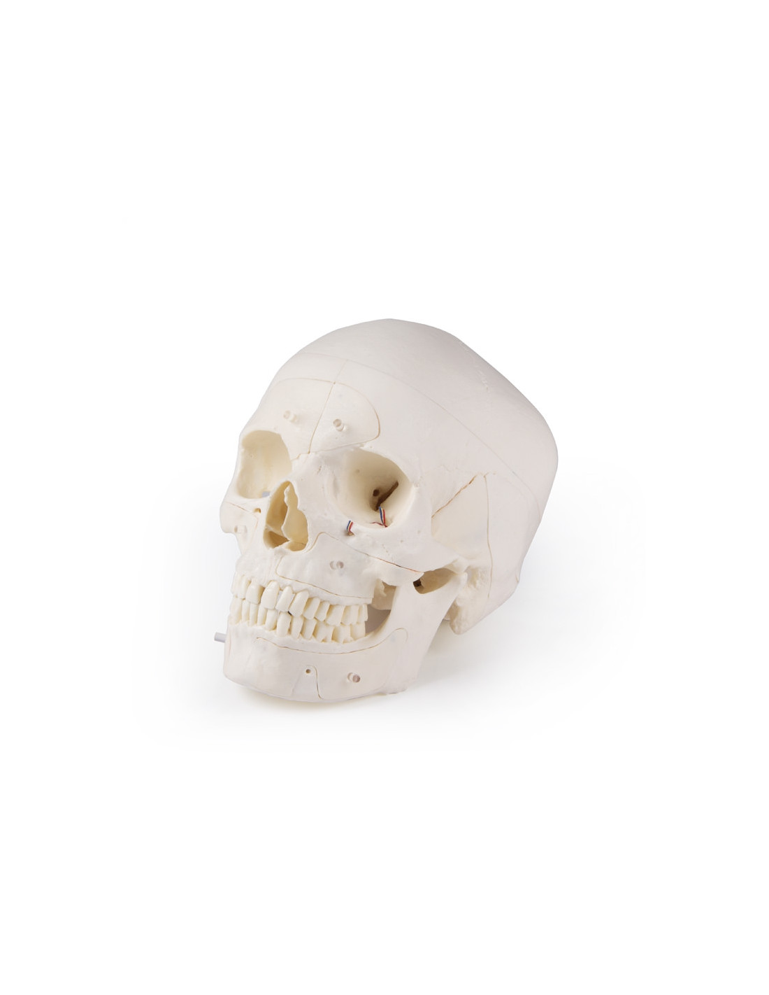 Le crâne de luxe pour études avancées, en 14 parties Erler Zimmer 4800 est fabriqué en PVC (polychlorure de vinyle), très dur, léger et résistant à la corrosion. Le PVC résiste aux réactions à l'acide, essence, alcool et hydrocarbures.