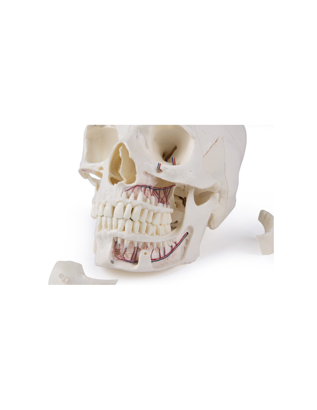La mâchoire et la mandibule exposent les structures de la dentition, les racines, la marge osseuse du processus alvéolaire, les vaisseaux dentaires et les nerfs sont visibles. Le sinus maxillaire peut être ouvert en enlevant un morceau osseux.