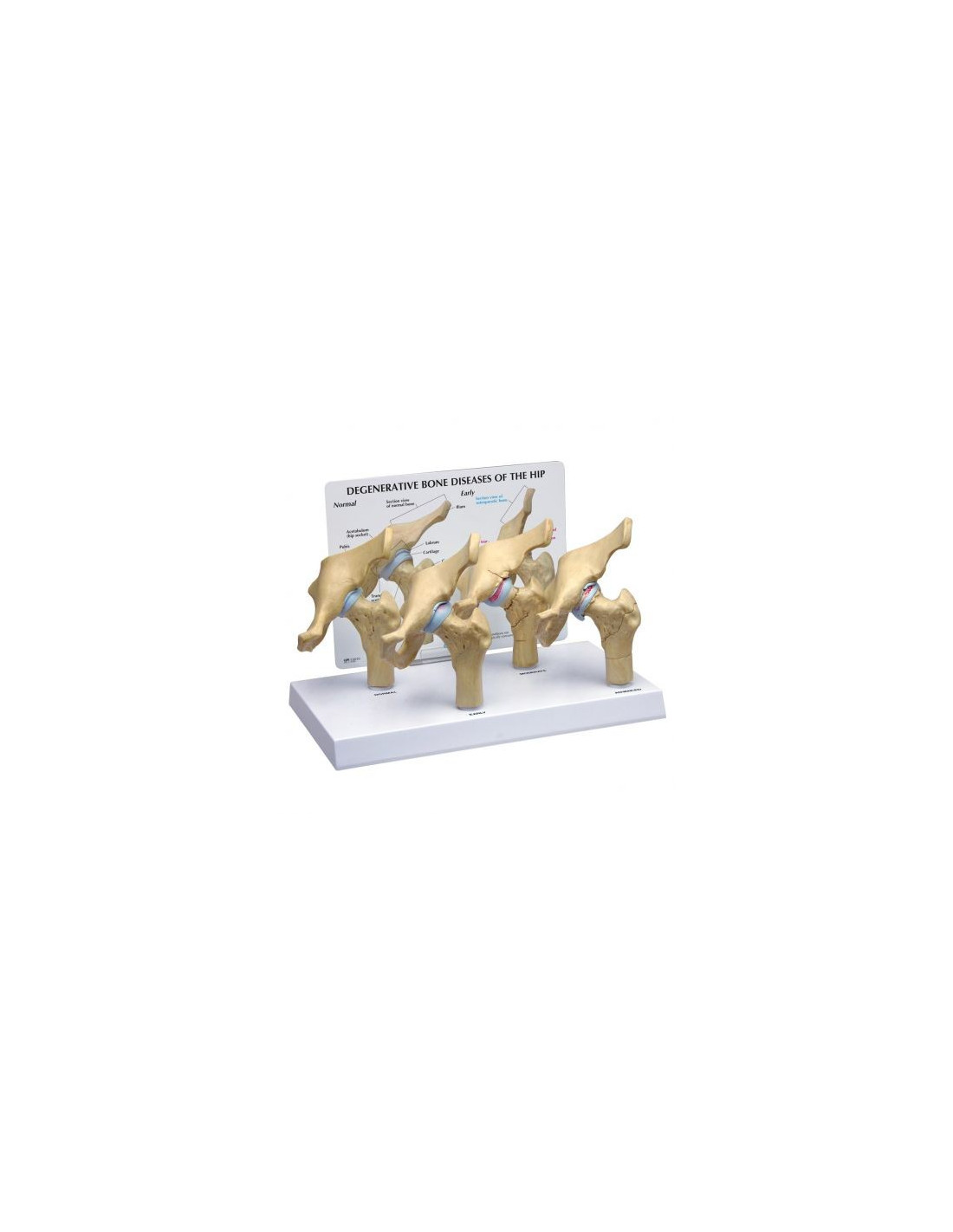 Il se compose d’un ensemble de quatre articulations de la hanche, de dimensions réduites par rapport à la taille réelle. Chacun des mini articulations illustre clairement une pathologie dégénérative de l’articulation, en détail :