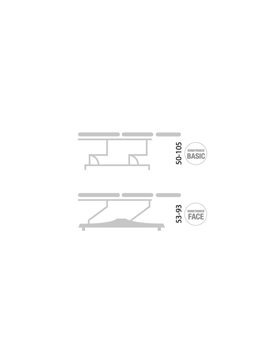 La struttura del lettino risulta stabile in tutte le posizioni e le altezze, con un raggio di sollevamento che varia a seconda della tipologia che si sceglierà: