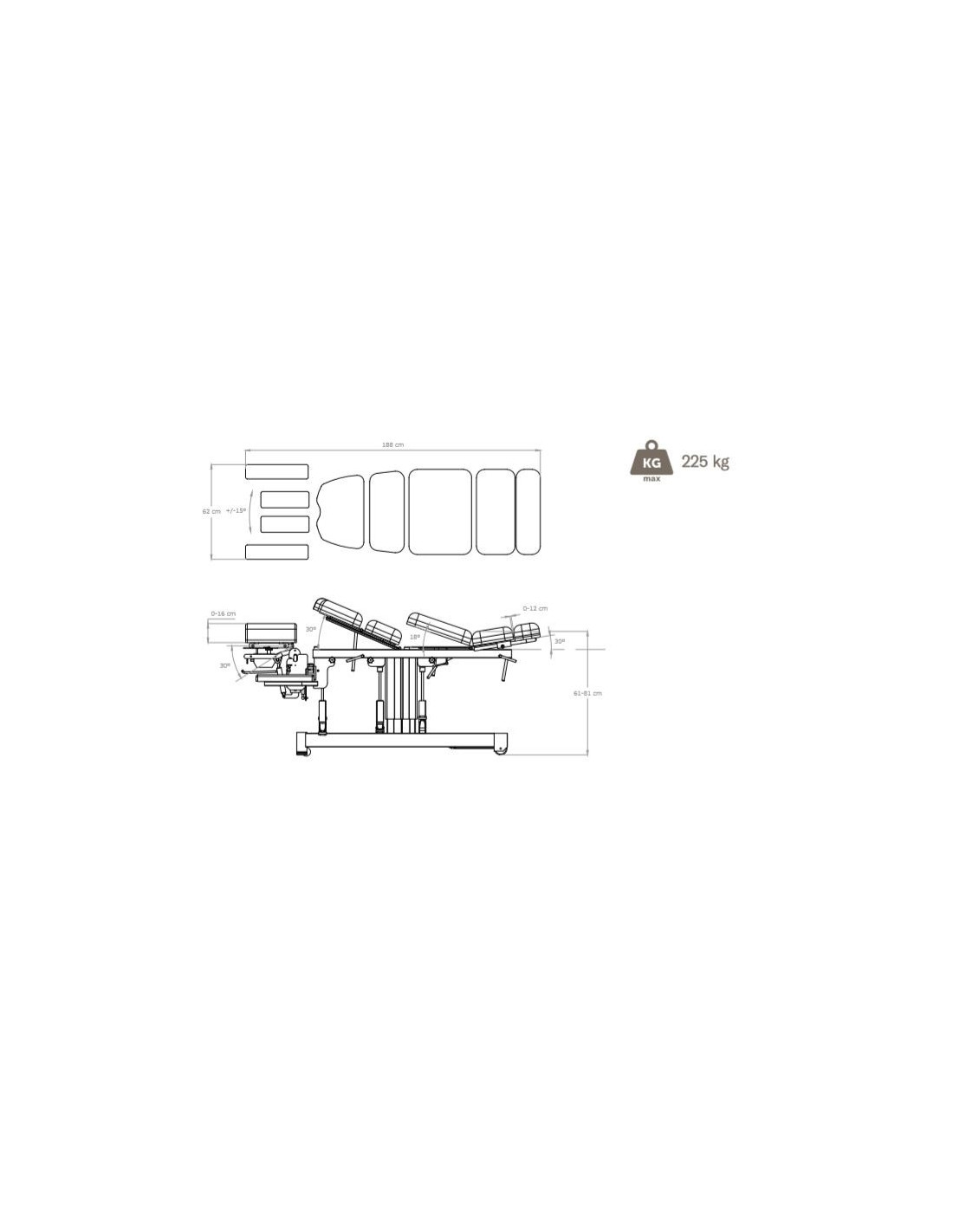 • 3 sezioni con drop regolabile ed azionamento a pedale:  toracica, lombare e pelvica